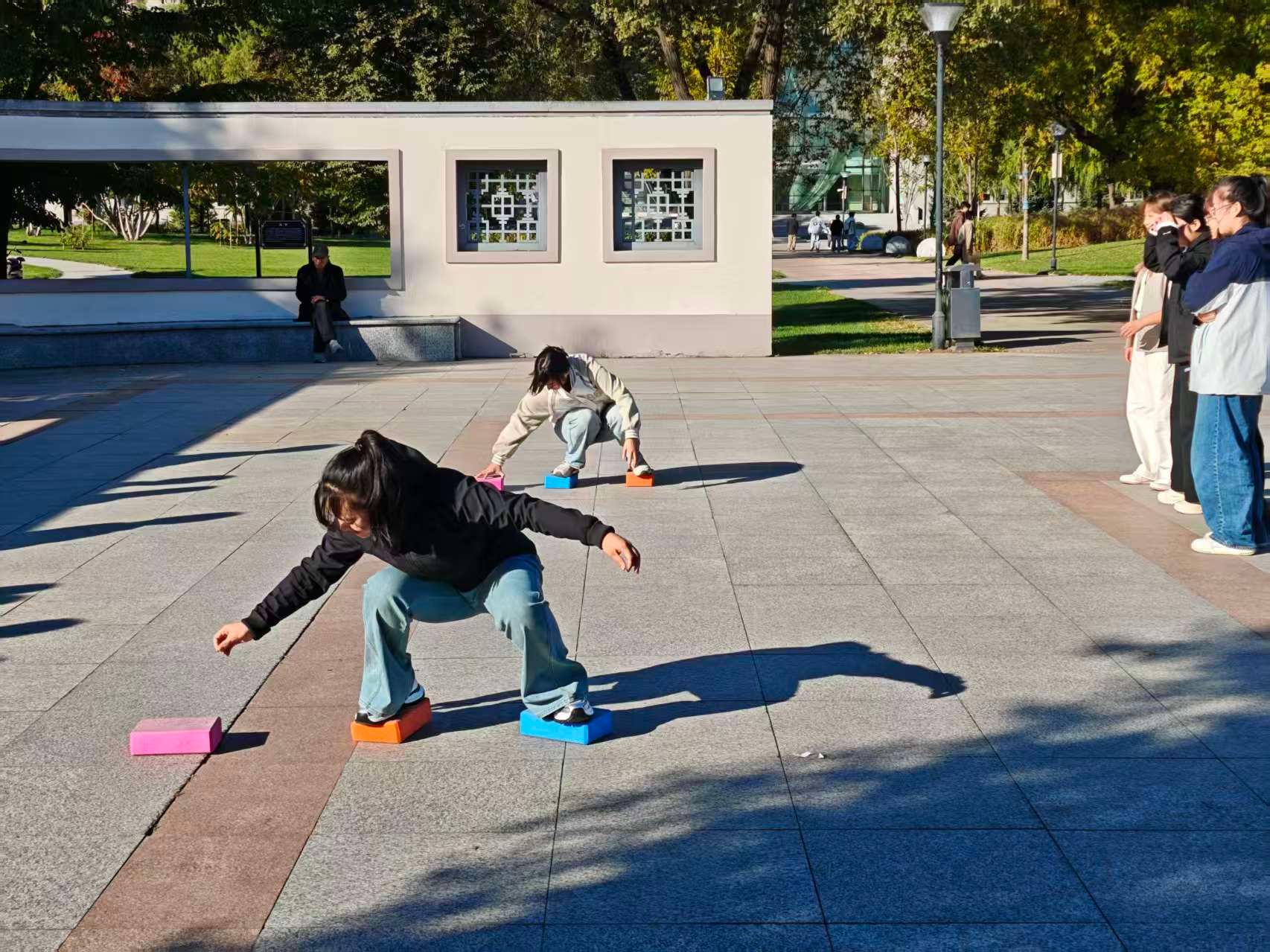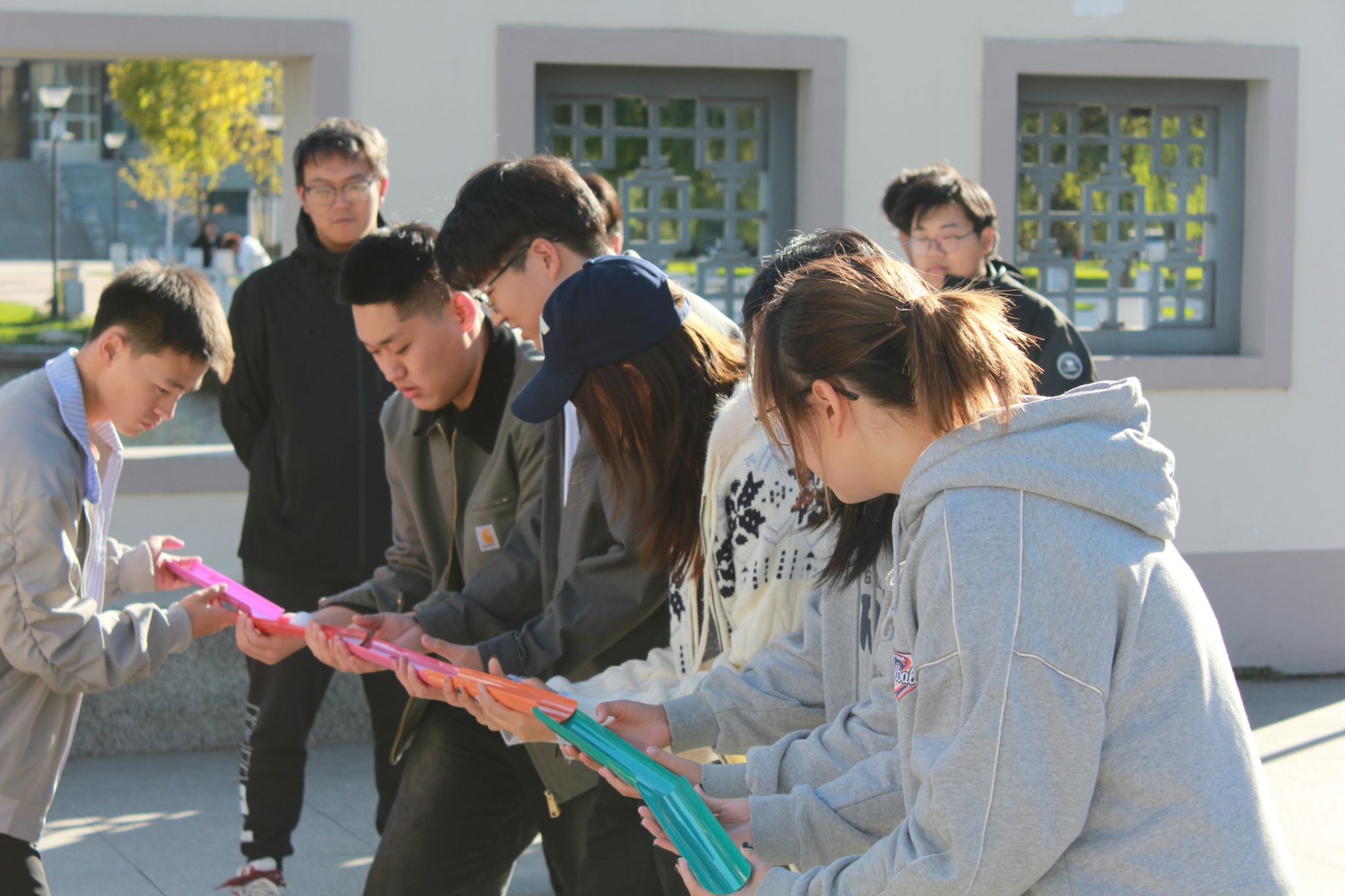 活动中,学院本科生新生辅导员韩伟、研究生新生辅导员马景龙带领学生开展“珠行万里”“不倒森林”等趣味十足的素质拓展游戏,让留校学生在互动中增进了彼此友谊,凝聚了集体归属感。